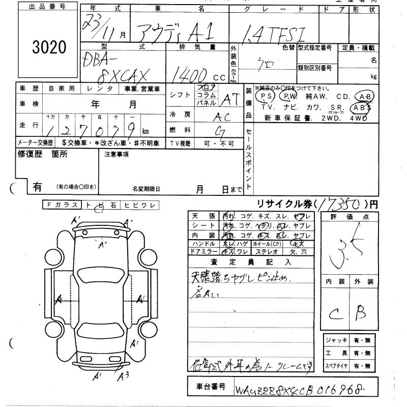 AUDI A1 - лот 3020