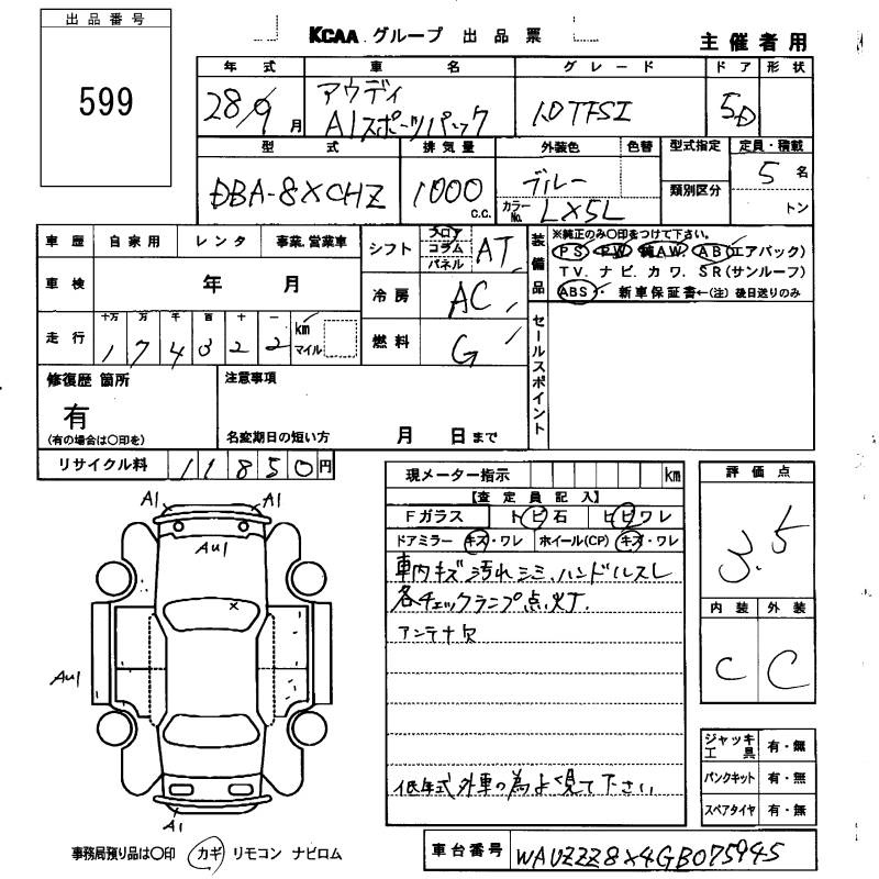AUDI A1 SPORTBACK - лот 599