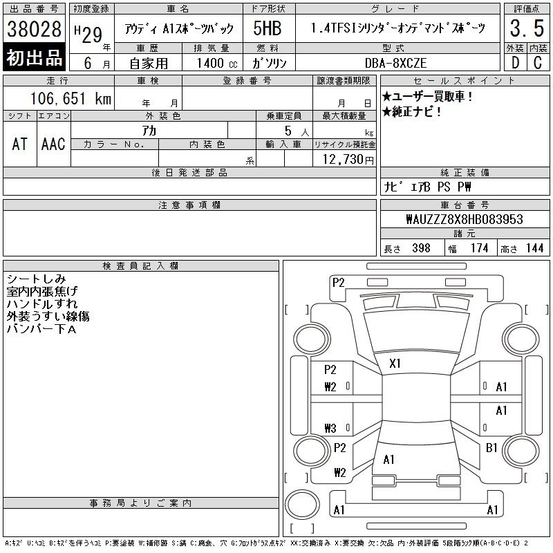 AUDI A1 SPORTBACK - лот 38028