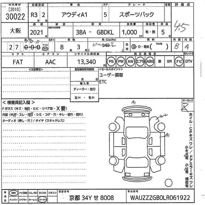 AUDI A1 SPORTBACK - лот 30022
