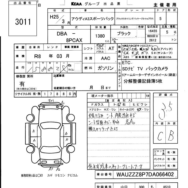 AUDI A3 - лот 3011