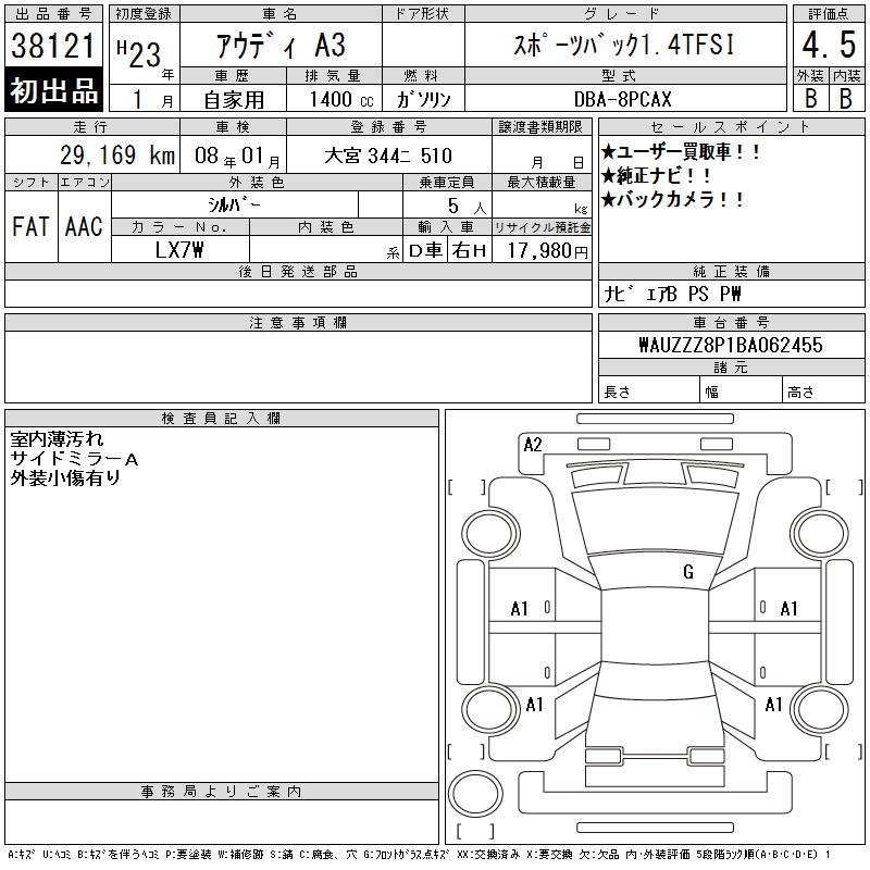 AUDI A3 SPORTBACK 1.4TFSI - лот 38121