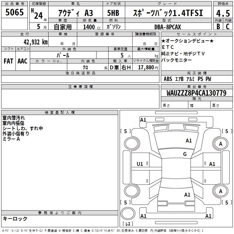 AUDI A3 SPORTBACK 1.4TFSI - лот 5065