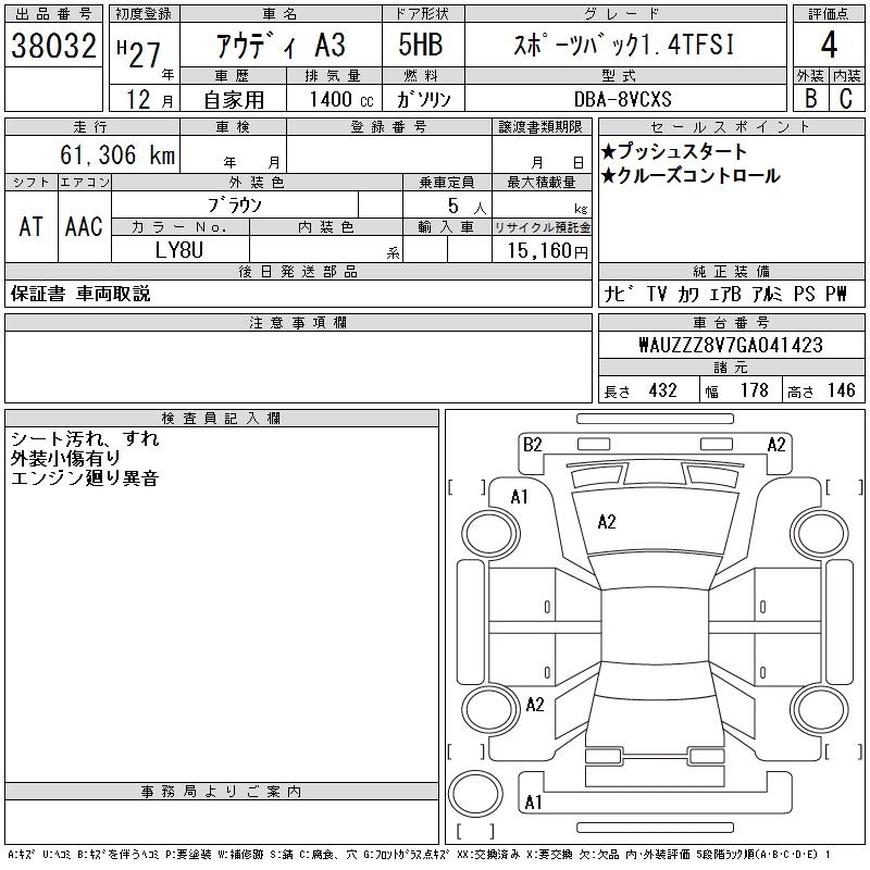 AUDI A3 SPORTBACK 1.4TFSI - лот 38032