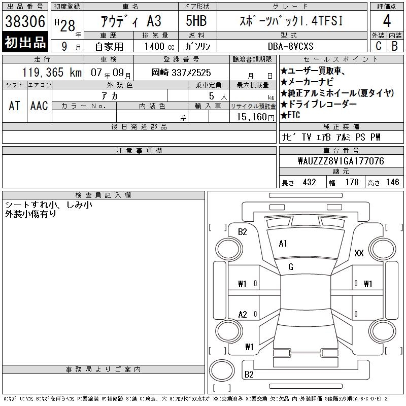 AUDI A3 SPORTBACK 1.4TFSI - лот 38306