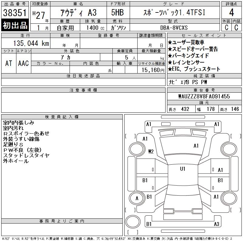 AUDI A3 SPORTBACK 1.4TFSI - лот 38351
