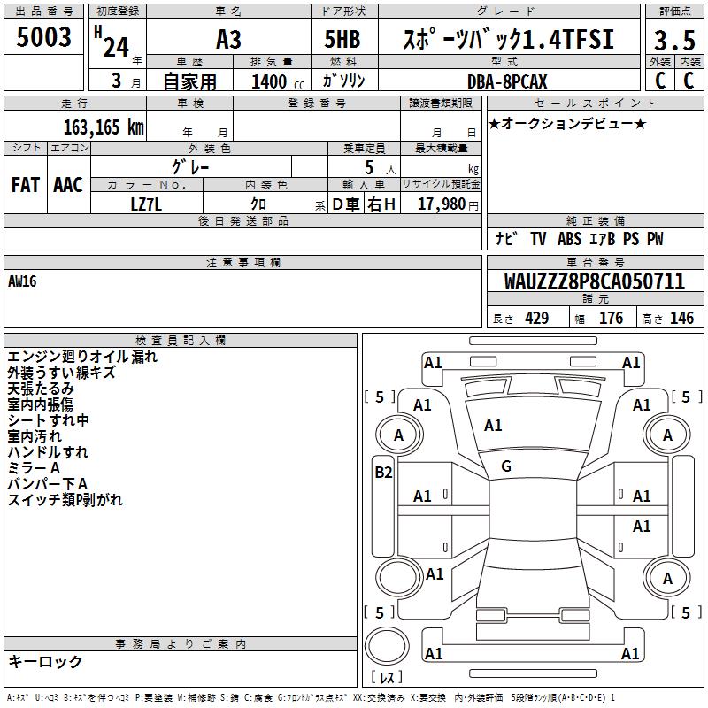 AUDI A3 SPORTBACK 1.4TFSI - лот 5003