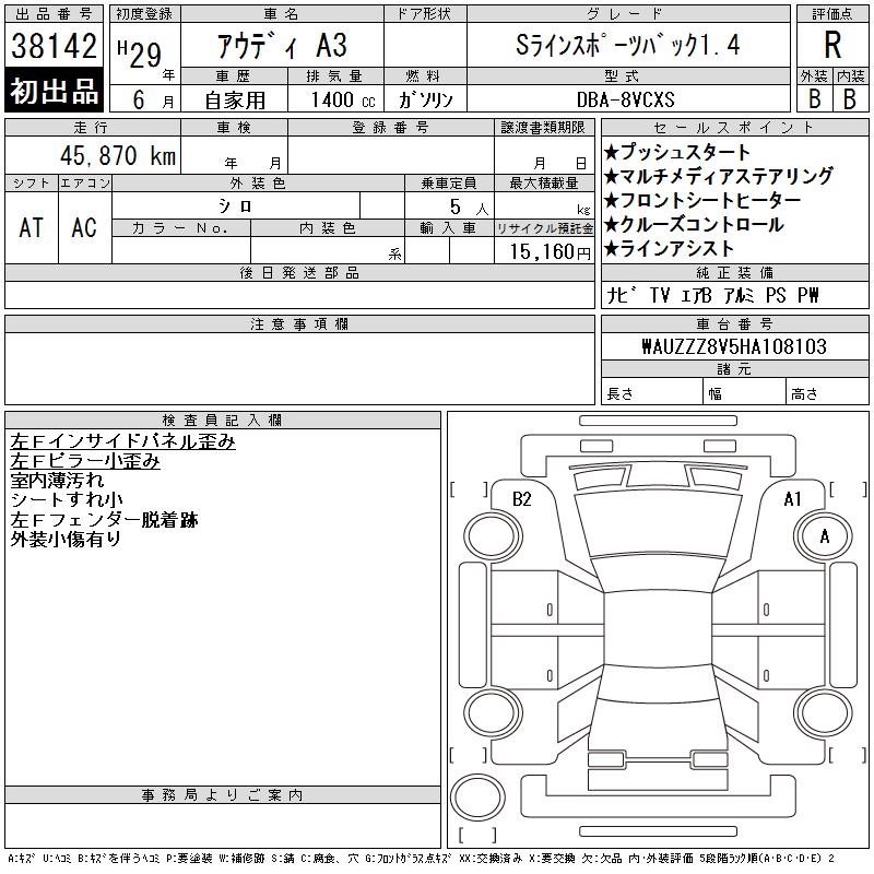 AUDI A3 S LINE SPORTBACK 1.4 - лот 38142