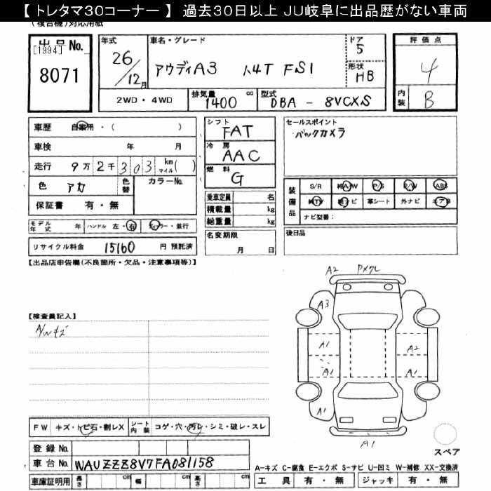 AUDI A3 A3 1.4TFSI - лот 8071