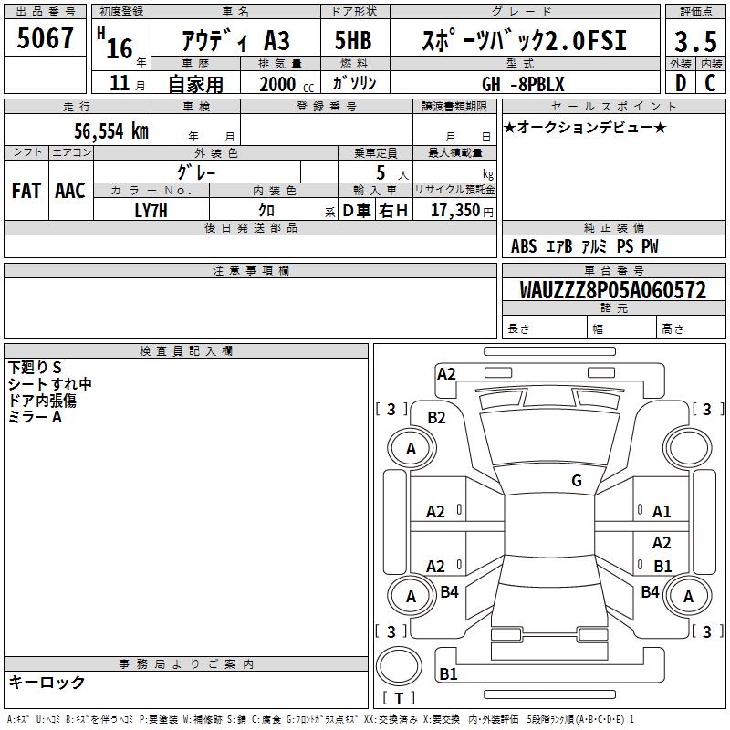 AUDI A3 SPORTBACK 2.0FSI - лот 5067