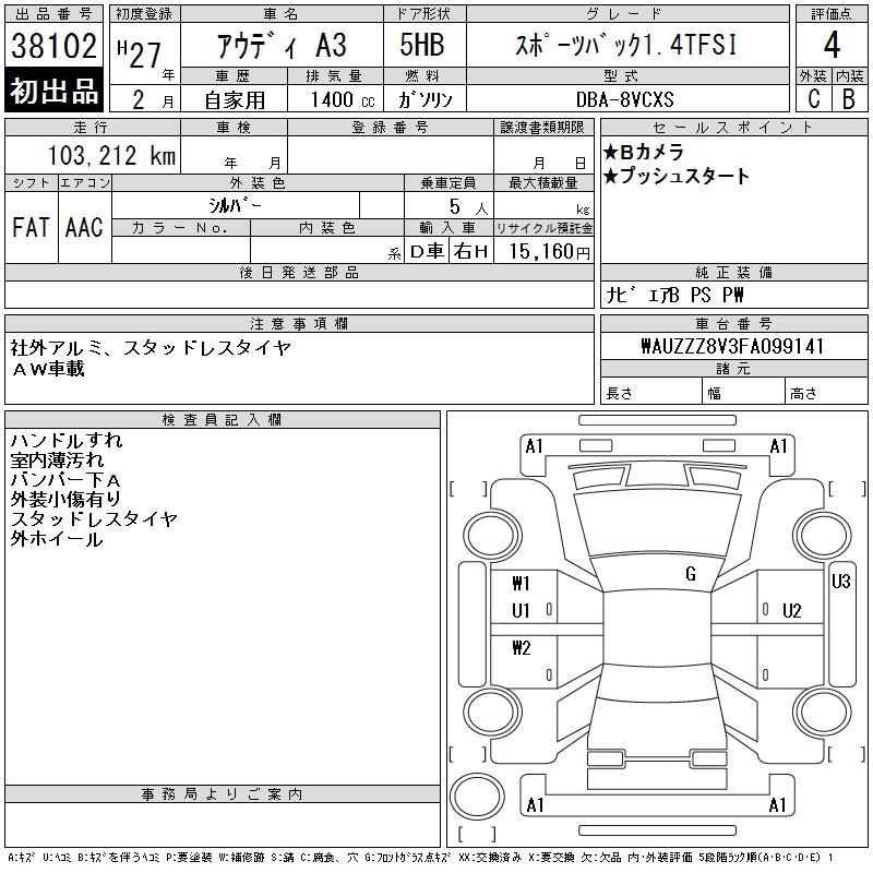 AUDI A3 SPORTBACK 1.4TFSI - лот 38102