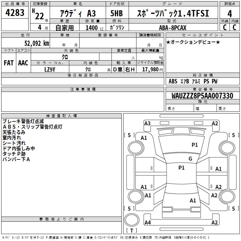 AUDI A3 SPORTBACK 1.4TFSI - лот 4283