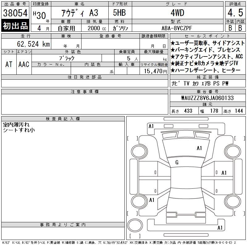 AUDI A3 SPORT B2.0TFSIKWATO4WD - лот 38054