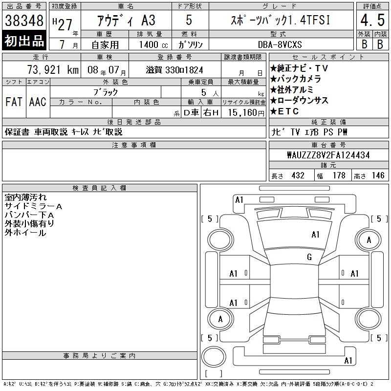 AUDI A3 SPORTBACK 1.4TFSI - лот 38348