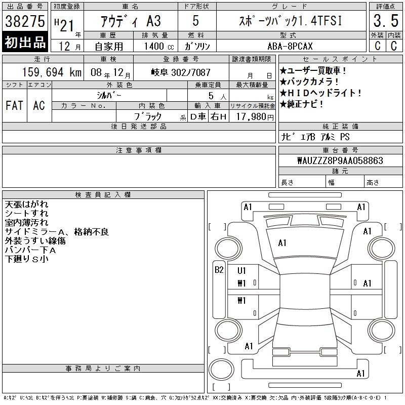 AUDI A3 SPORTBACK 1.4TFSI - лот 38275