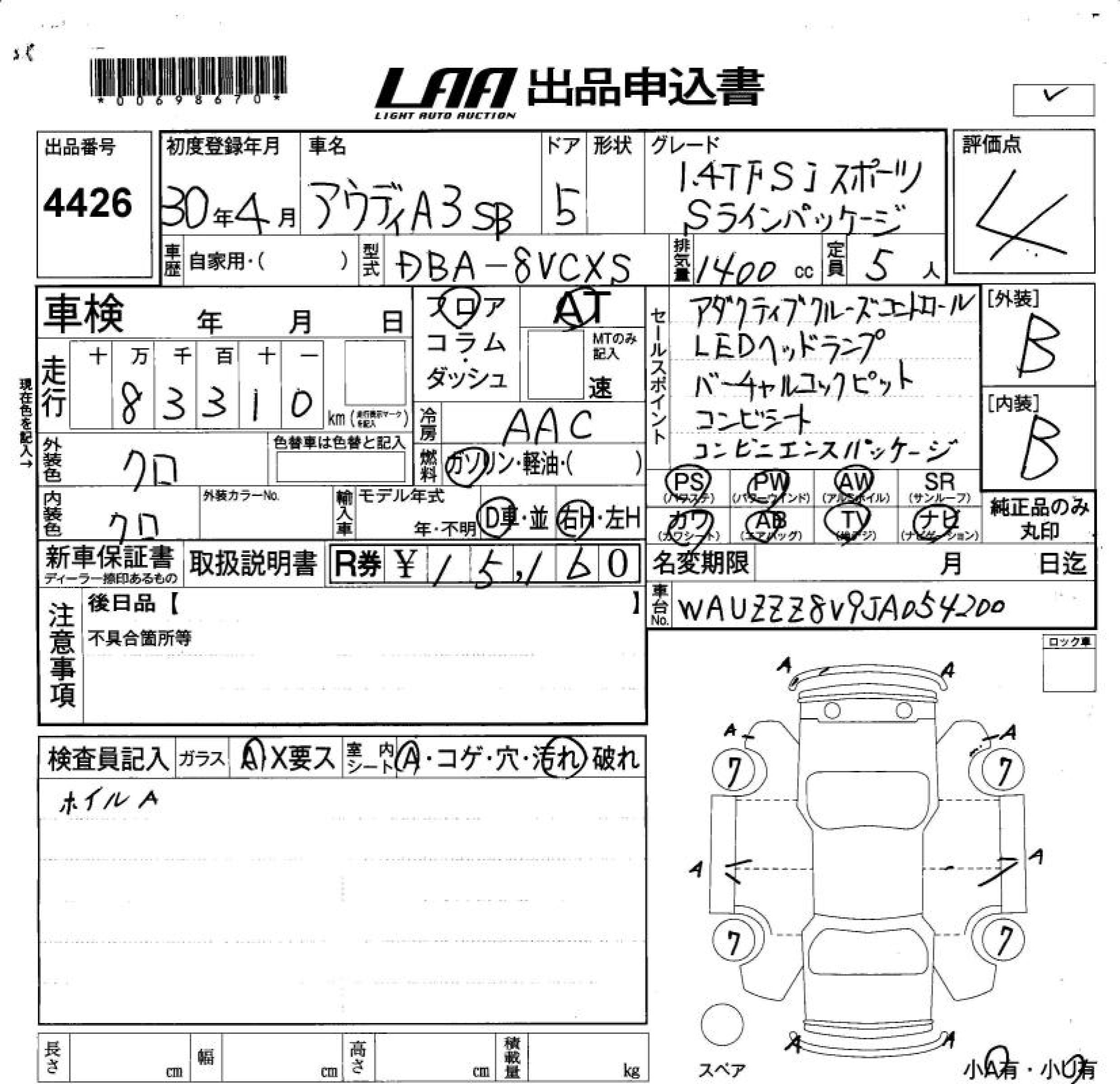 AUDI A3 SPORTBACK 1.4TFSI - лот 4426