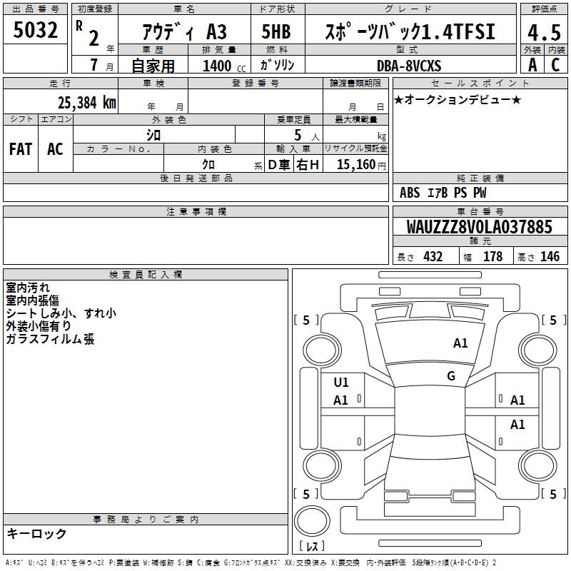 AUDI A3 SPORTBACK 1.4TFSI - лот 5032