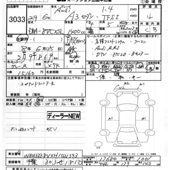 AUDI A3 1.4TFSI - лот 3033