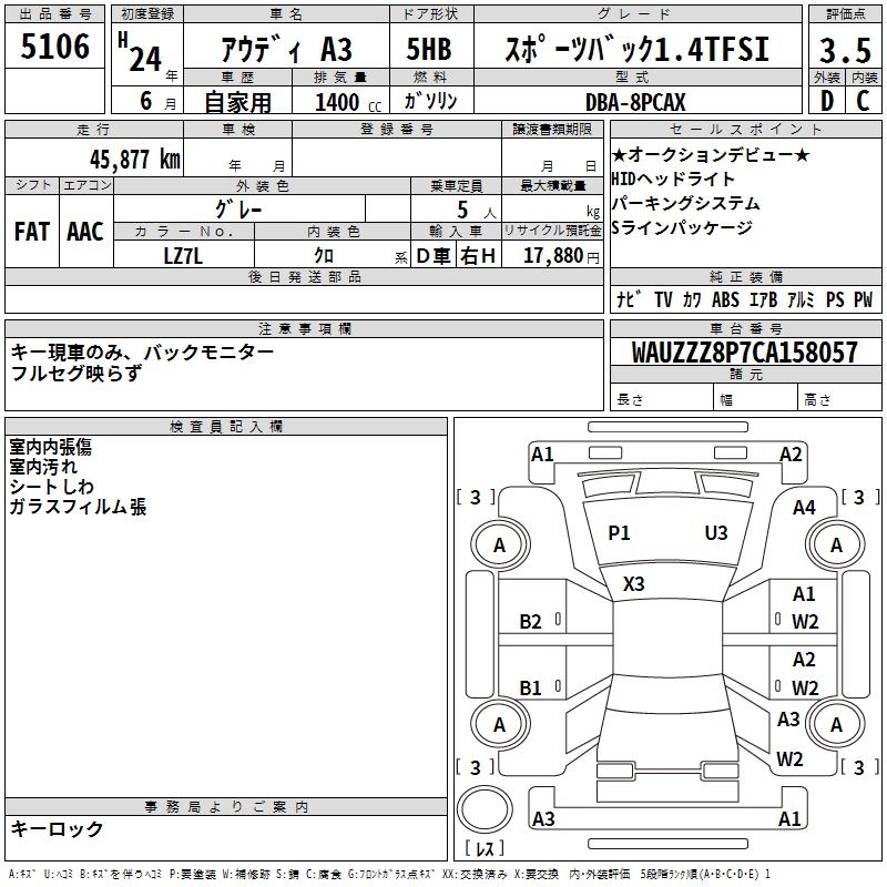 AUDI A3 SPORTBACK 1.4TFSI - лот 5106