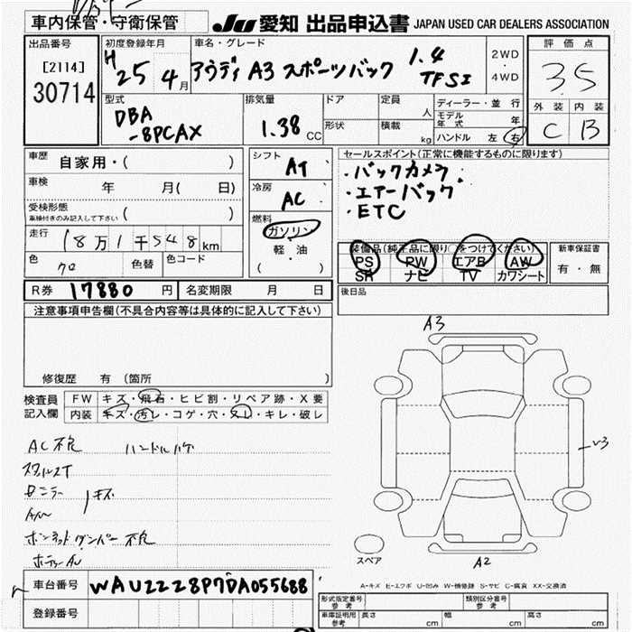 AUDI A3 1.4TFSI - лот 30714