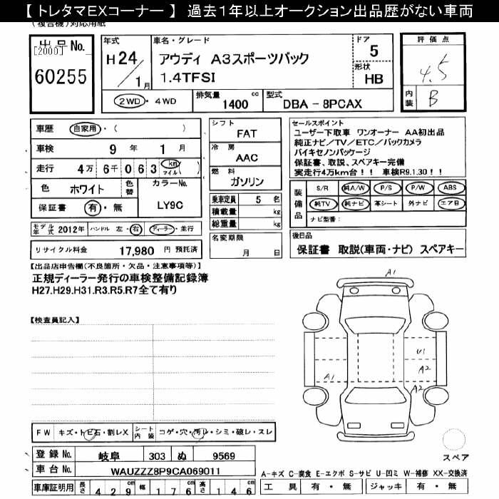 AUDI A3 A3 SPORTBACK 1.4TFSI - лот 60255