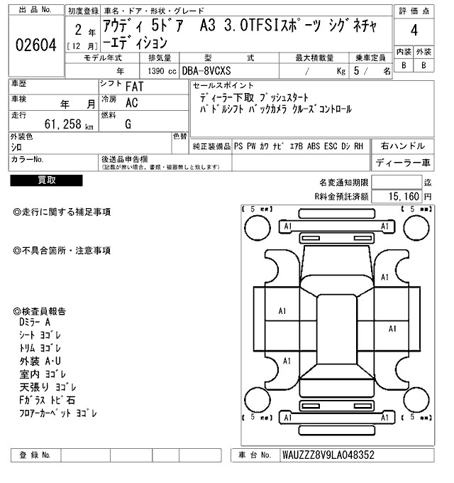 AUDI A3 A3 3.0TFSI SPORT SIGNATURE EDITION - лот 2604
