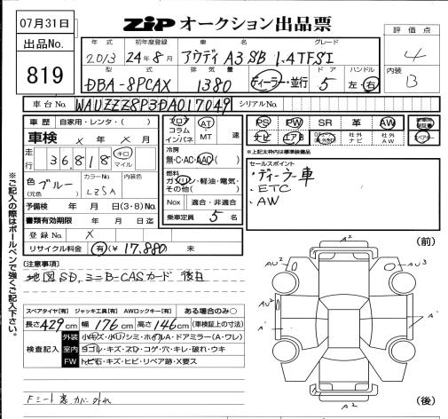 AUDI A3 A3 SB 1.4TFSI - лот 819