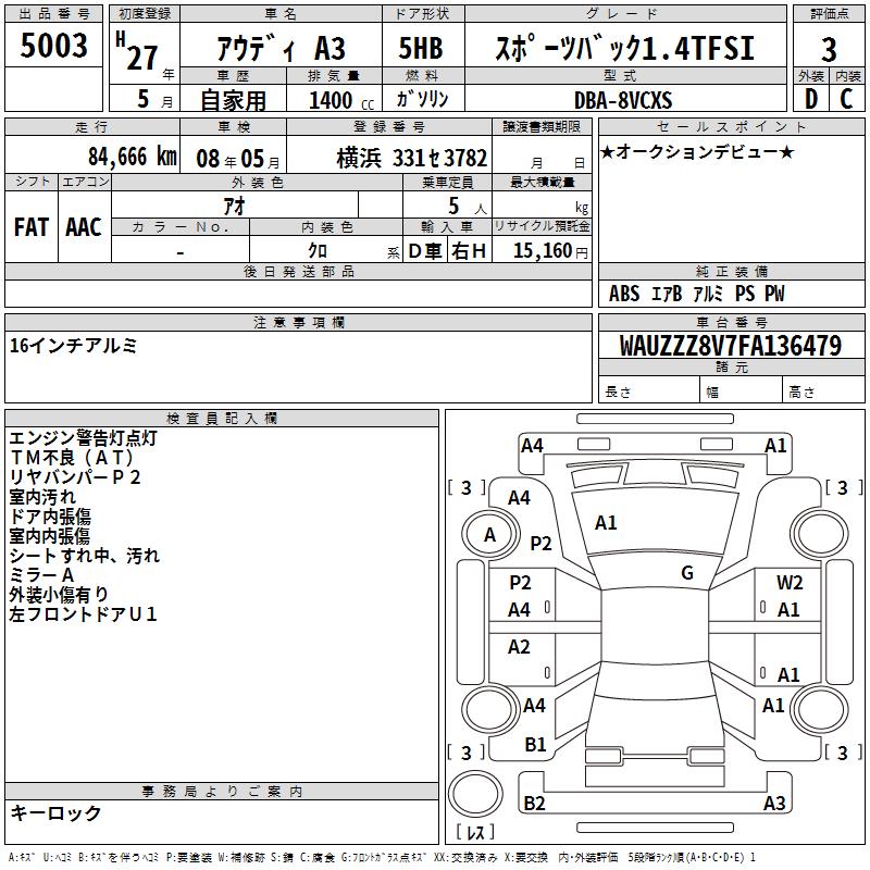 AUDI A3 SPORTBACK 1.4TFSI - лот 5003
