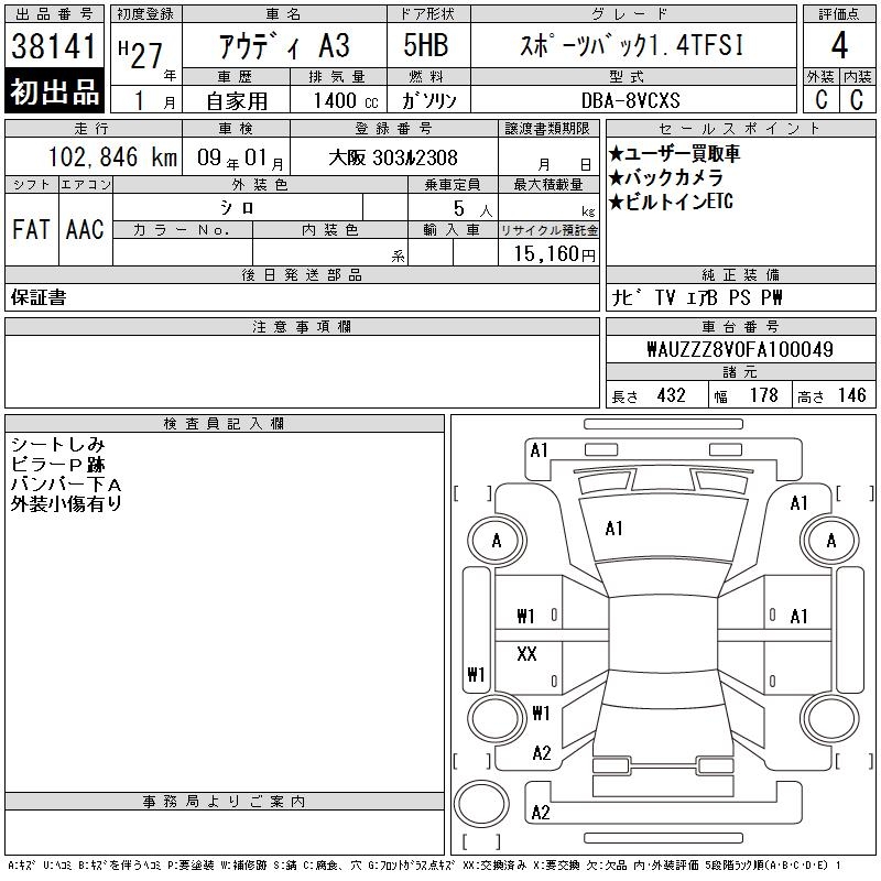 AUDI A3 SPORTBACK 1.4TFSI - лот 38141