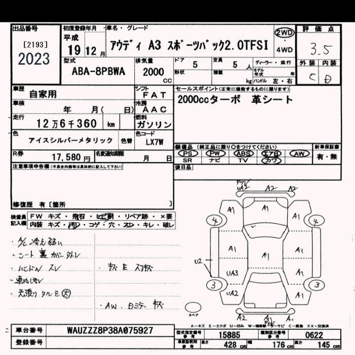 AUDI A3 SPORTBACK 2.0TFSI - лот 2023