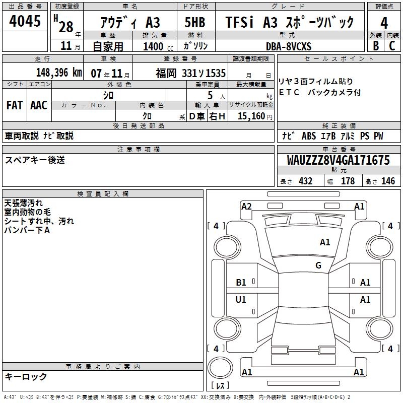 AUDI A3 TFSI A3 SPORTBACK - лот 4045