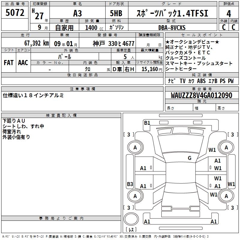 AUDI A3 SPORTBACK 1.4TFSI - лот 5072