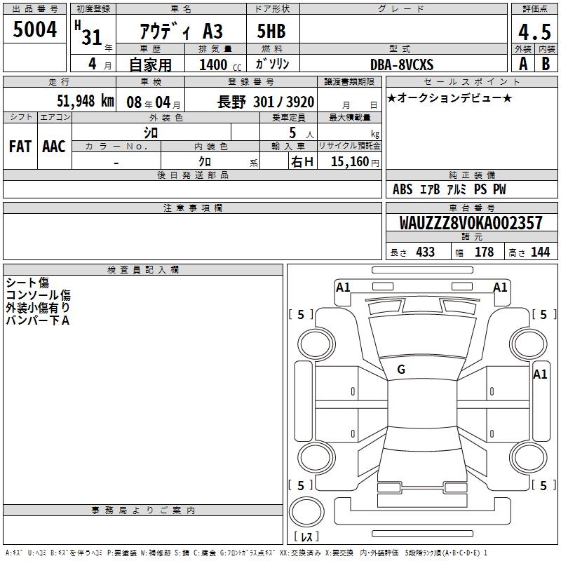 AUDI A3 - лот 5004