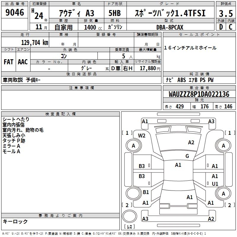AUDI A3 SPORTBACK 1.4TFSI - лот 9046