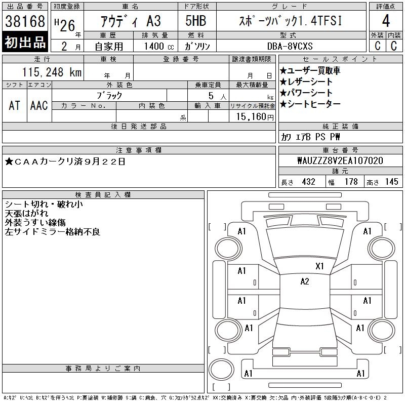 AUDI A3 SPORTBACK 1.4TFSI - лот 38168