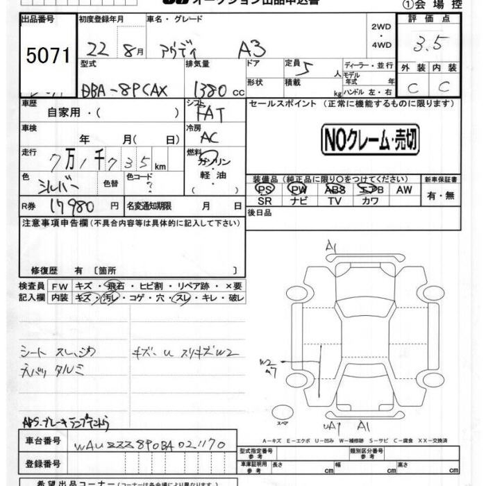 AUDI A3 - лот 5071