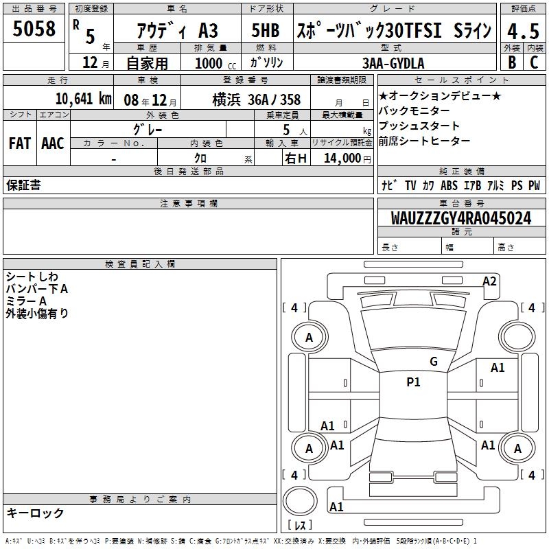 AUDI A3 SPORTBACK 30TFSI S LINE - лот 5058