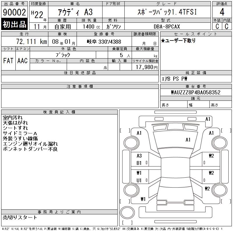 AUDI A3 SPORTBACK 1.4TFSI - лот 90002