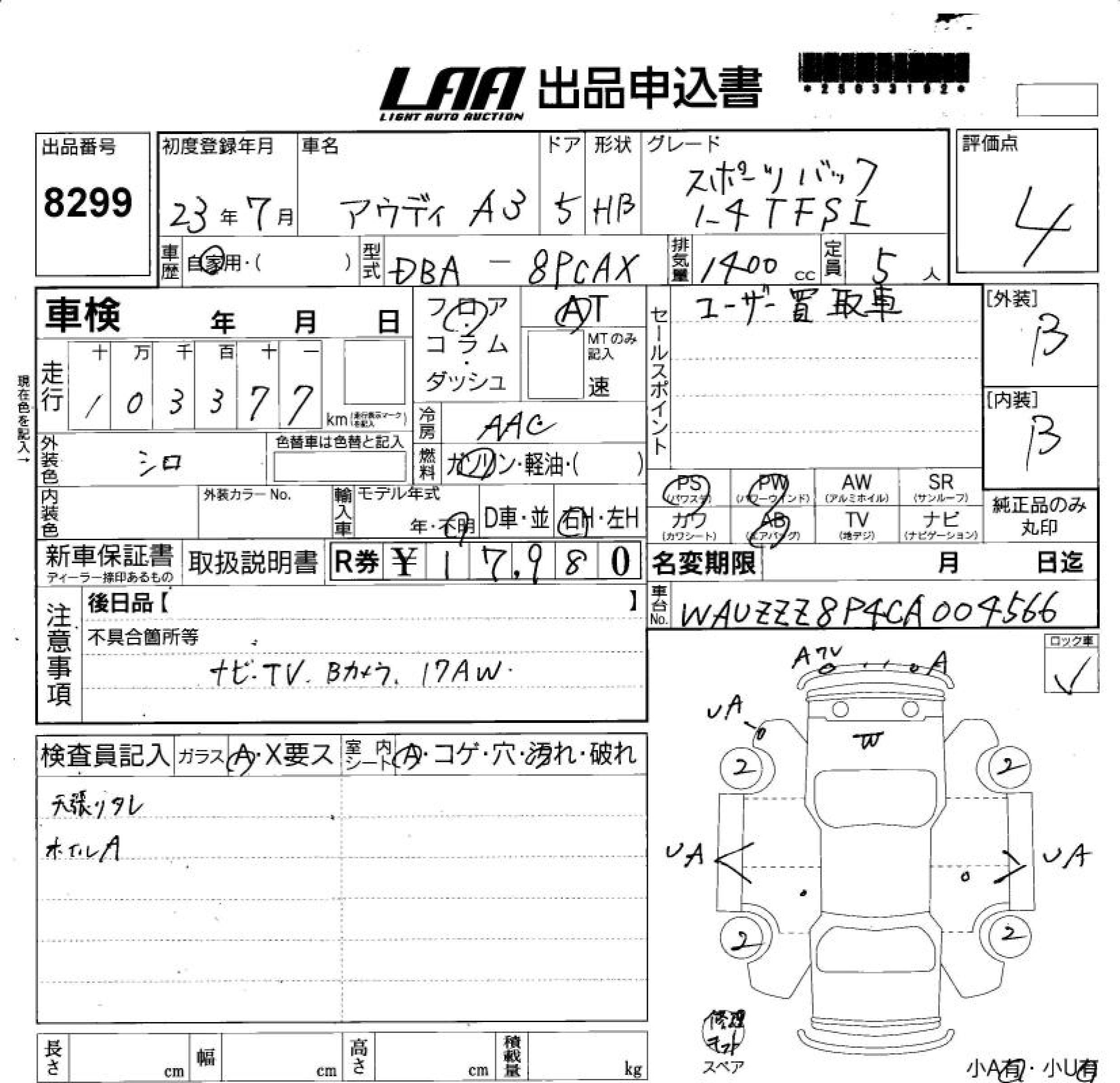 AUDI A3 SPORTBACK 1.4TFSI - лот 8299