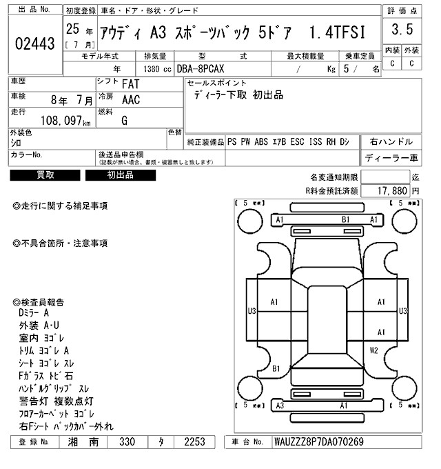 AUDI A3 1.4TFSI - лот 2443