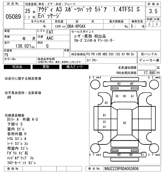 AUDI A3 1.4TFSI SE PACKAGE - лот 5089