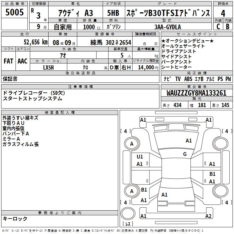 AUDI A3 SPORT B30TFSI ADVANCE - лот 5005