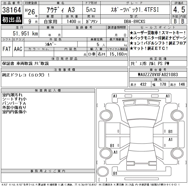 AUDI A3 SPORTBACK 1.4TFSI - лот 38164