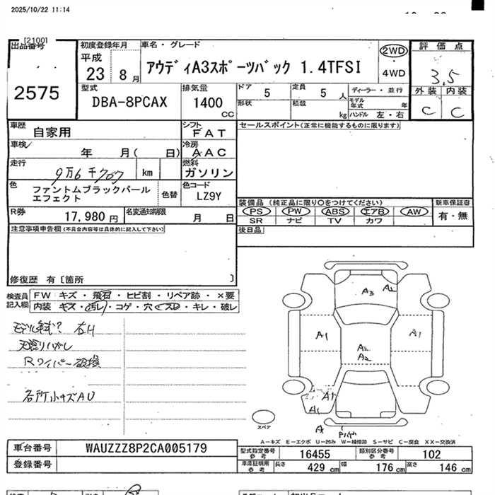 AUDI A3 SPORTBACK 1.4TFSI - лот 2575