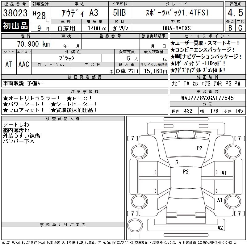 AUDI A3 SPORTBACK 1.4TFSI - лот 38023