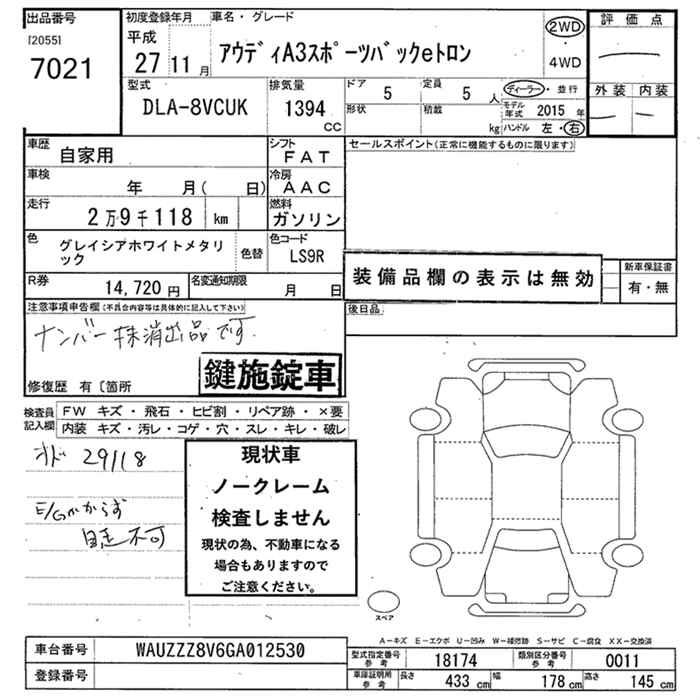 AUDI A3 SPORTBACK ETO LONG - лот 7021