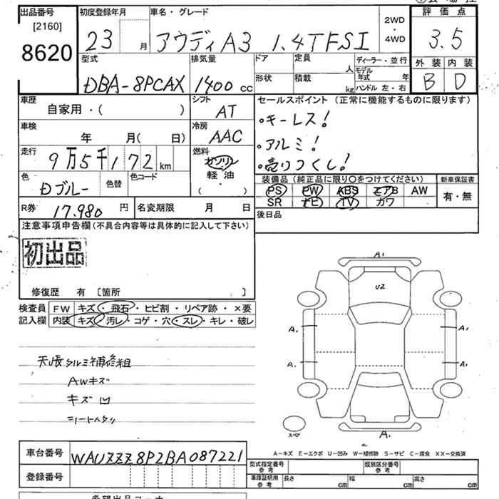 AUDI A3 SPORTBACK 1.4TFSI - лот 8620
