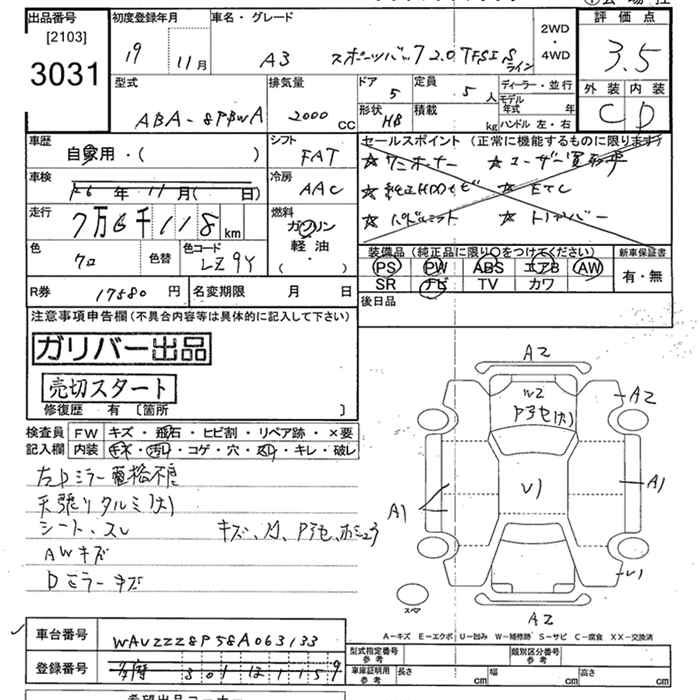 AUDI A3 - лот 3031