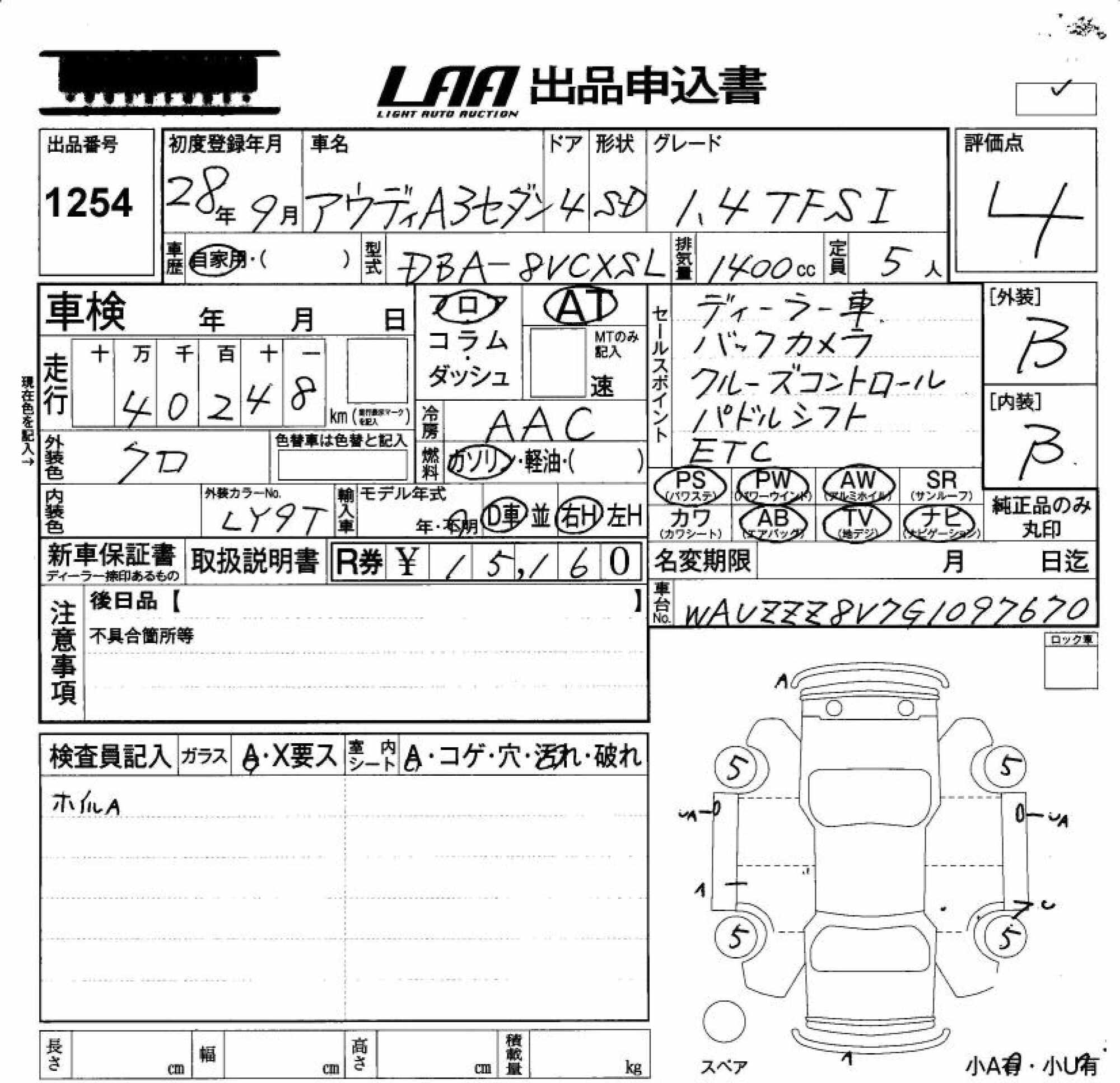AUDI A3 SEDAN - лот 1254