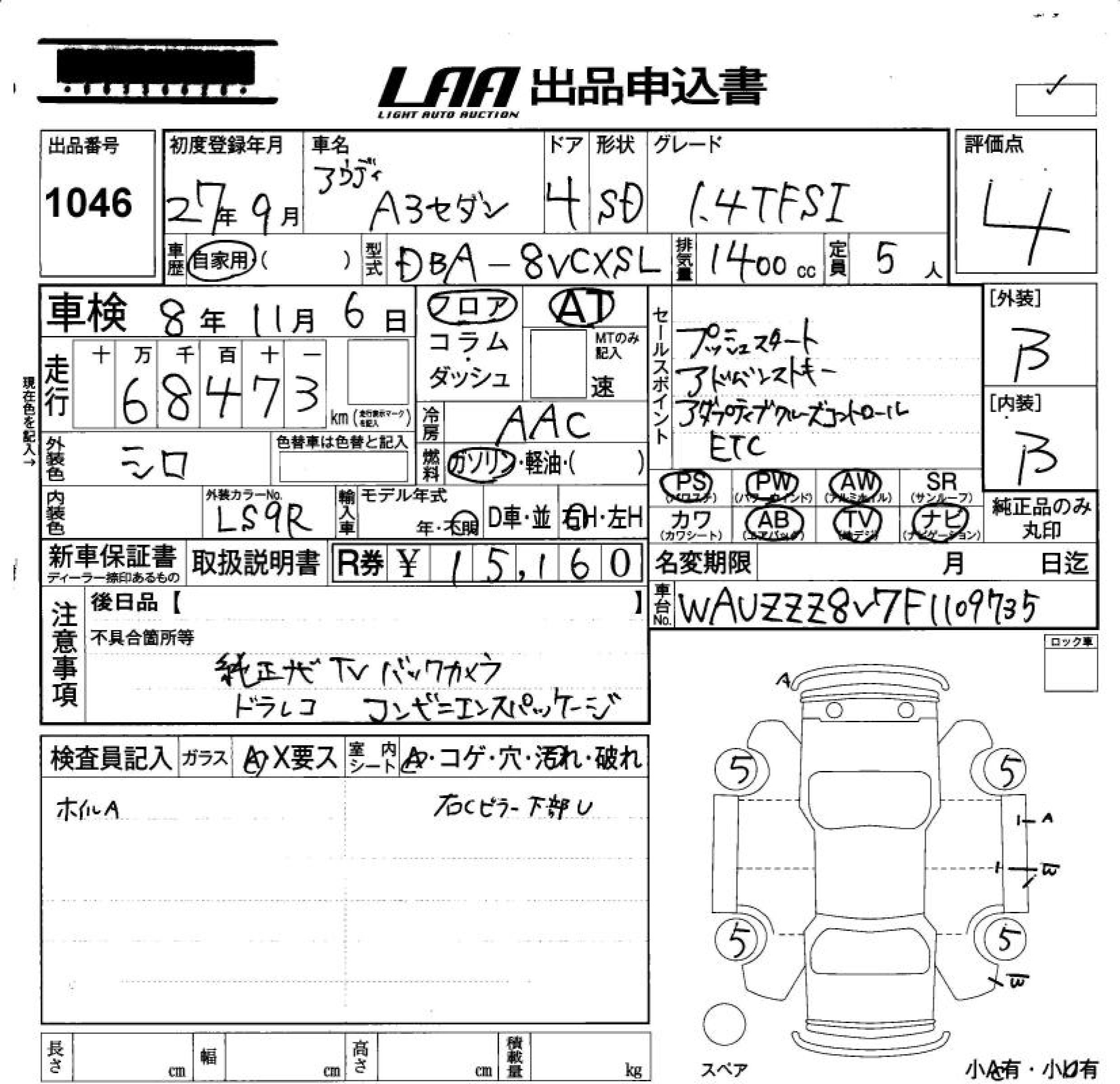 AUDI A3 SEDAN - лот 1046